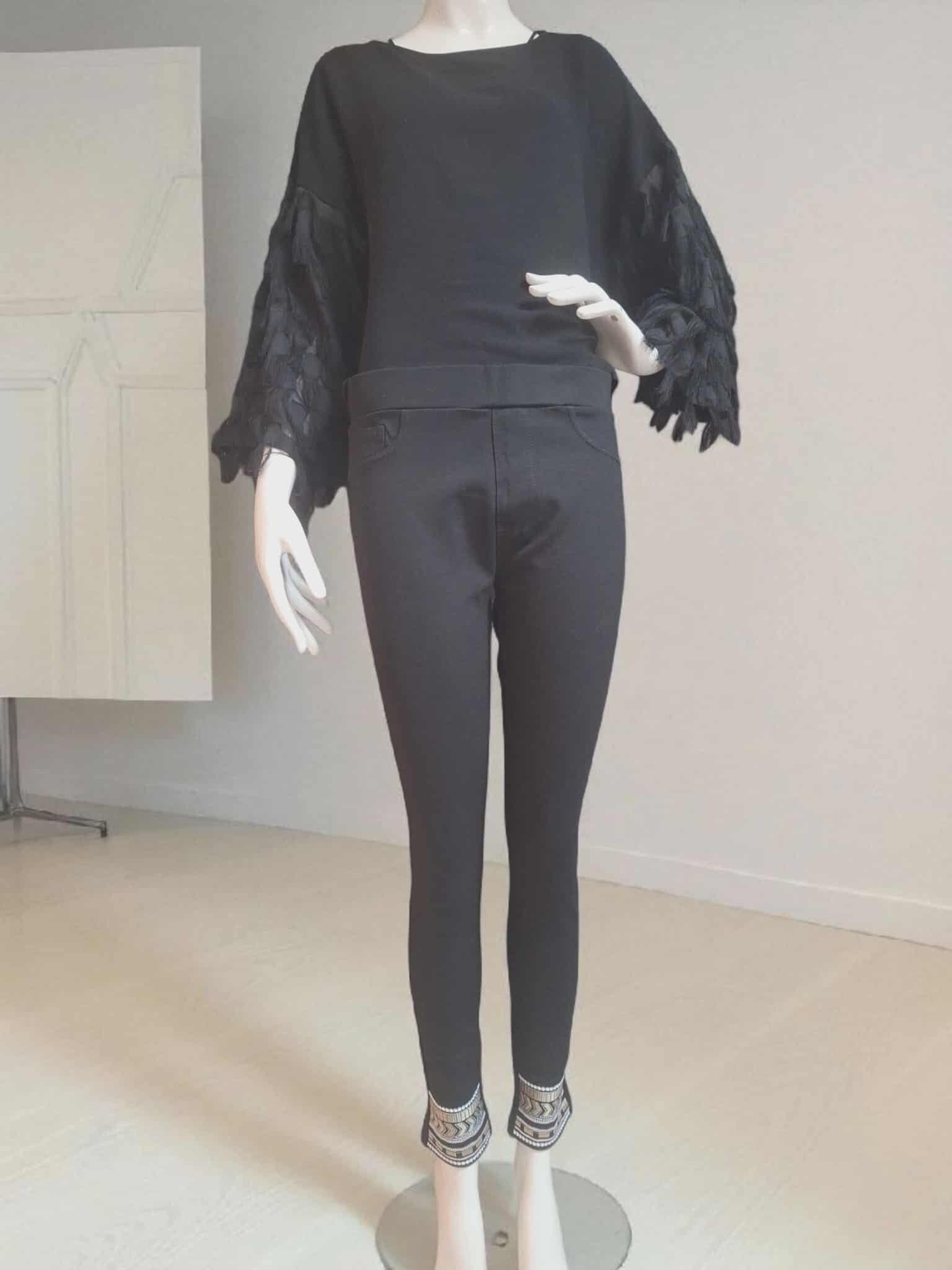 Faites sensation avec notre pantalon slim à motif aztèque noir, une pièce audacieuse et stylée pour votre garde-robe.Une coupe ajustée et agréable à porter.Idéal pour un look décontractée ou sophistiqué, selon vos envies.