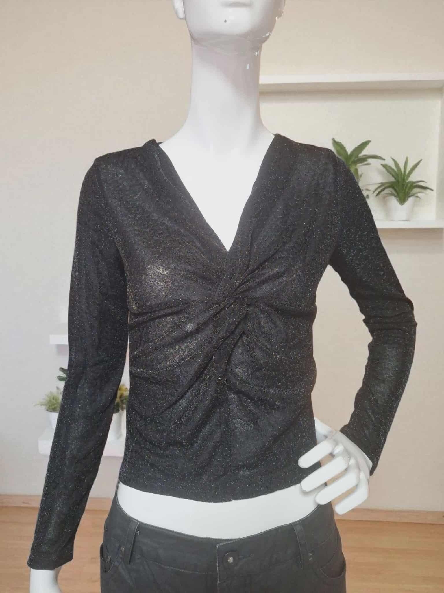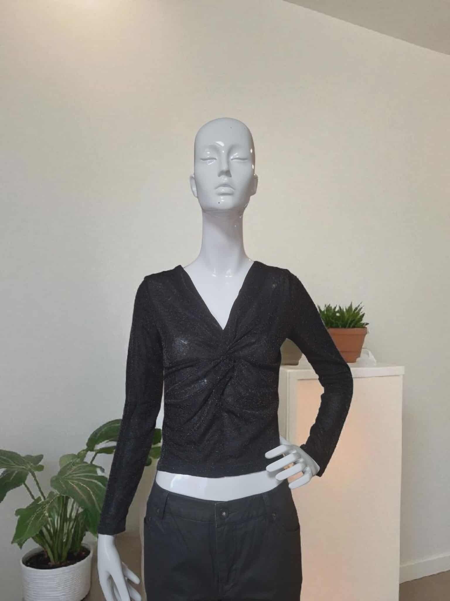 Haut scintillant avec imprimés léopard noir à manches longues, col V idéal pour sortir. Ce haut rendra votre tenue beaucoup plus ravissante.