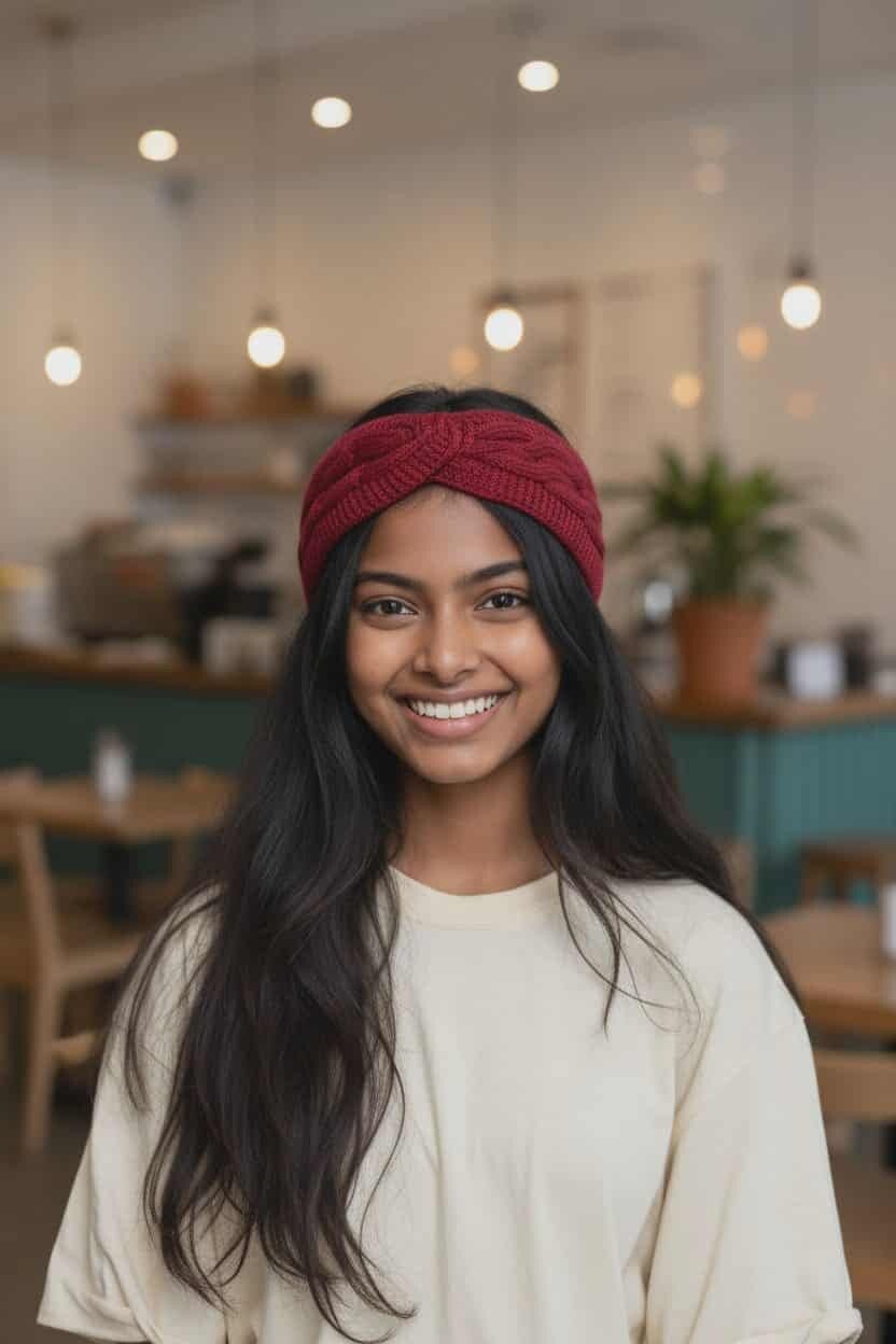 Bandeau torsadé en acrylique doux et chaud. Sa texture tricotée et sa torsade centrale apportent une touche élégante tout en gartdant la tête et les oreilles bien au chaud. Idéal pour l'hiver, il allie confort et style au quotidien.