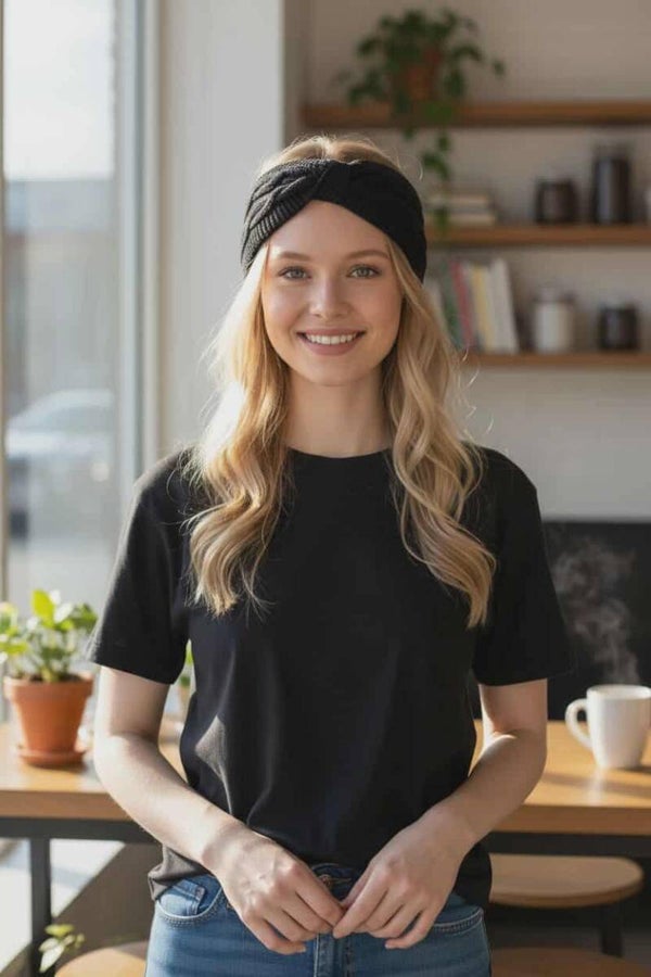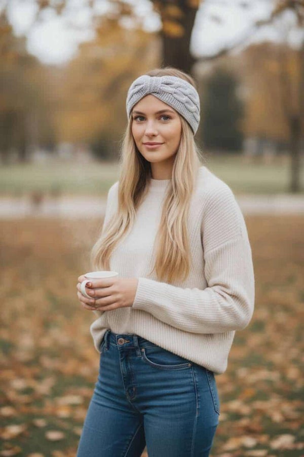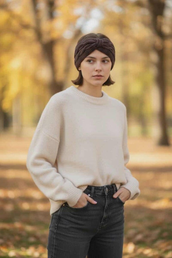 Bandeau torsadé en acrylique doux et chaud. Sa texture tricotée et sa torsade centrale apportent une touche élégante tout en gartdant la tête et les oreilles bien au chaud. Idéal pour l'hiver, il allie confort et style au quotidien.