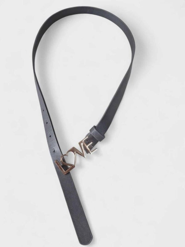Cette fine ceinture tendance séduit par son motif "LOVE" en métal, qui ajoute une touche élégante et romantique à toutes les tenues. Confectionnées en matiére 100%synthétique, elle allie légèreté et souplesse. Parfaite pour marquer la taille d'une robe, d'un pantalon ou d'un manteau, cette ceinture est un accessoire chic et polyvalent, idéal pour compléter un look moderne et féminin.