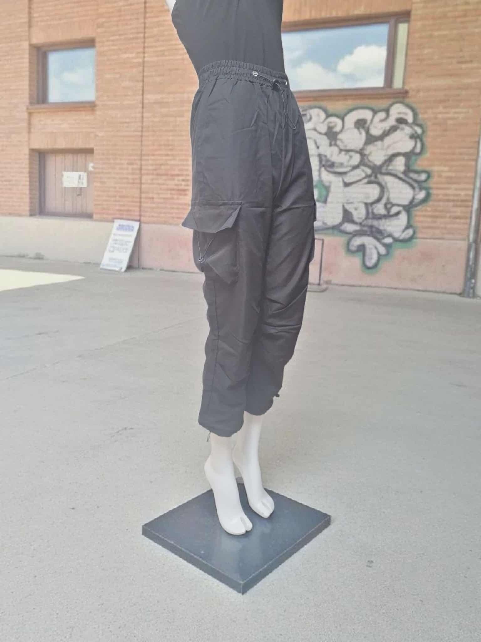 Le pantalon cargo fabriqué en spandex polyester. Il posséde une ceinture avec un cordon de serrage, permettant un ajustement personnalisé à la taille. En bas du pantalon, il y a également un système de serrage avec cordon, ce qui permet de modifier la largeur des chevilles, offrant ainsi une silhouette ajustée. Ce type de pantalon est souvent apprécié pour sa praticité, avec des poches latérales et un style décontracté. Parfait pour un look à la fois fonctionnel et tendance.
